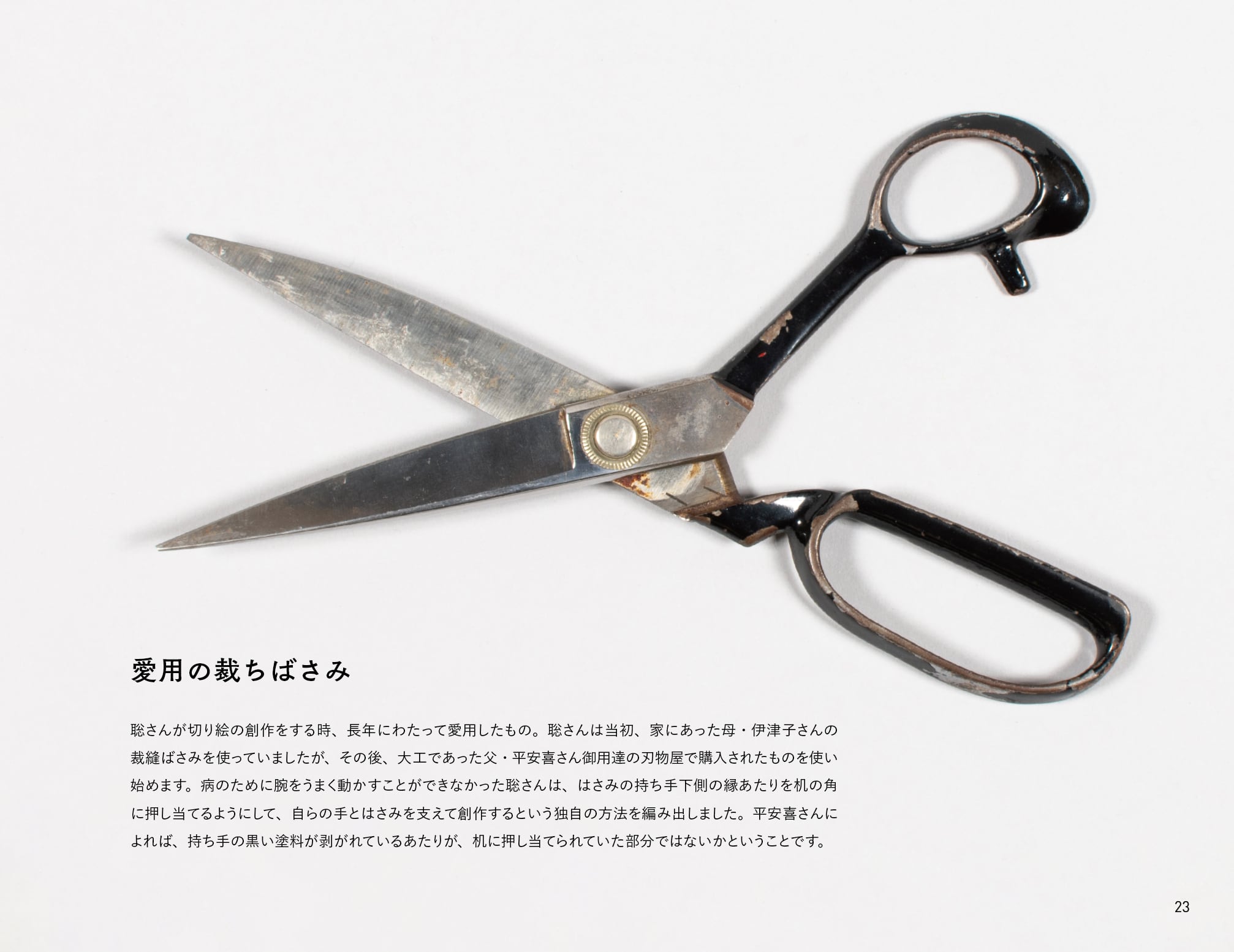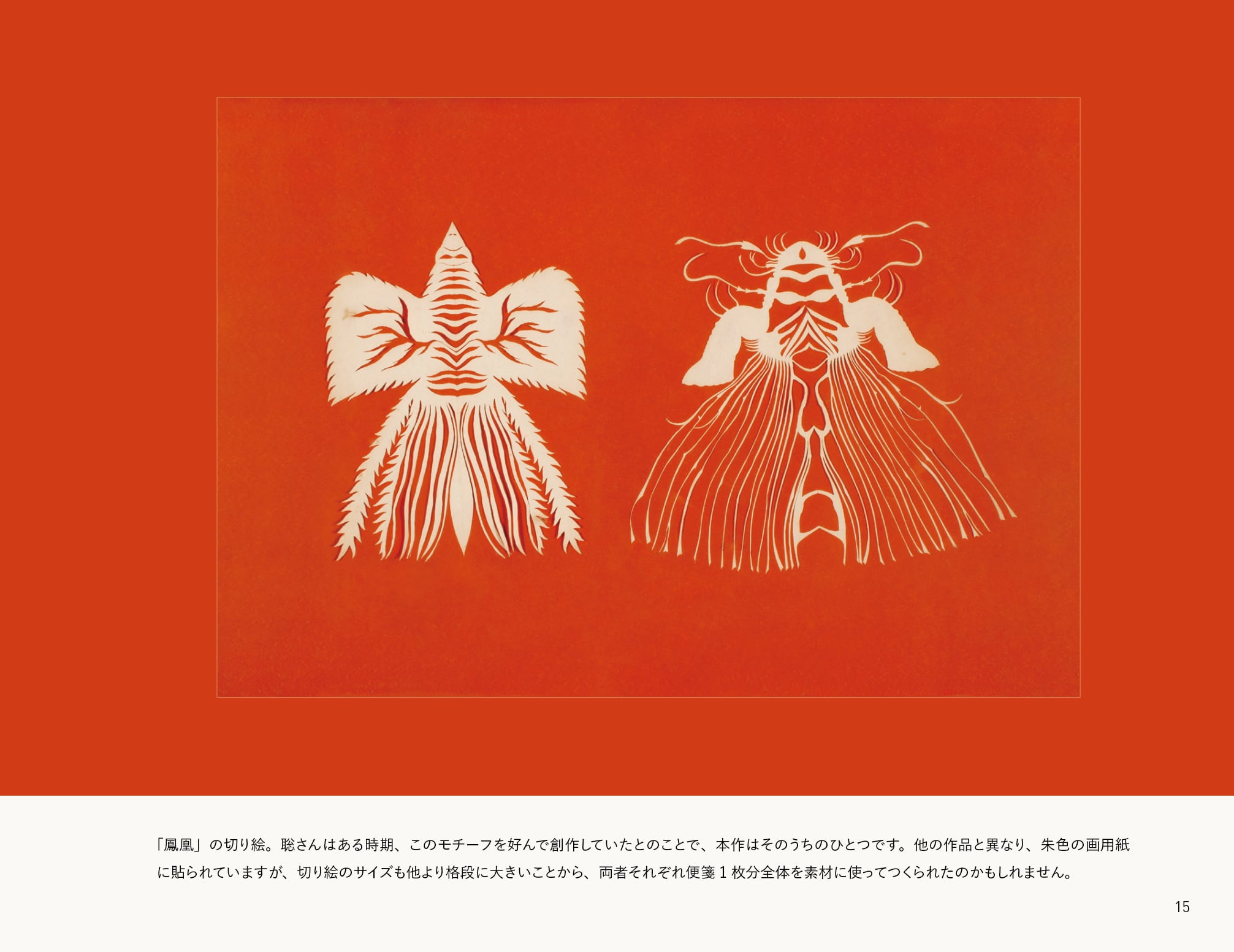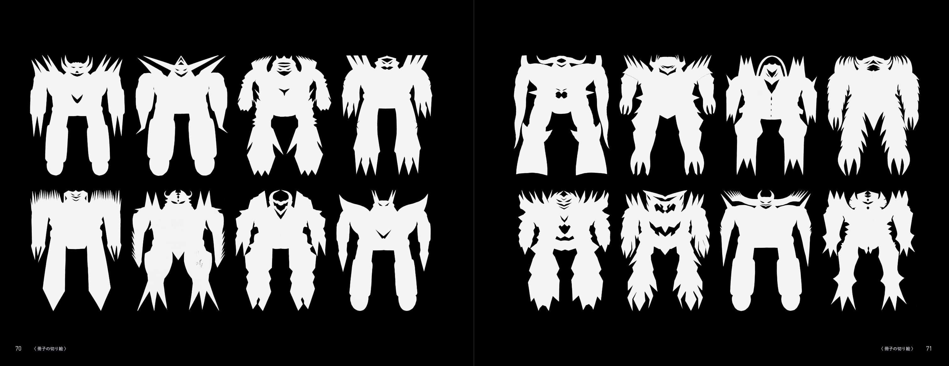 聡さんは小学校への入学後、筋ジストロフィーを発症。12歳頃より、便箋と裁ちばさみを使って切り絵の創作を独学で始め、20歳で亡くなるまでの数年間で無数の作品を生み出しました。本書には、廃校となり解体を待つ小学校舎内に長年放置されていたところを発見/救出されて同展覧会への参加や本書発行の起点となった額装作品をはじめ、自宅に遺されていた切り絵やいくつかの特注品、愛用のはさみなど様々な資料のほか、父・平安喜さんへの聞き取りも掲載。登場する切り絵の総数/種類は、現存が確認されている作品のほぼ全点となる約560体で、聡さんがつくりだした独自の怪獣やロボットや動物や生命体の切り絵が図鑑のようにずらりと姿を現す内容となっています。